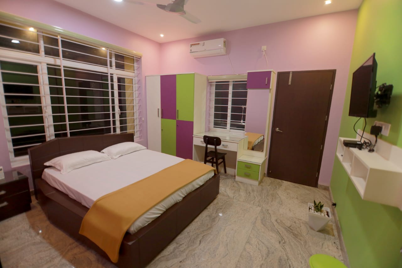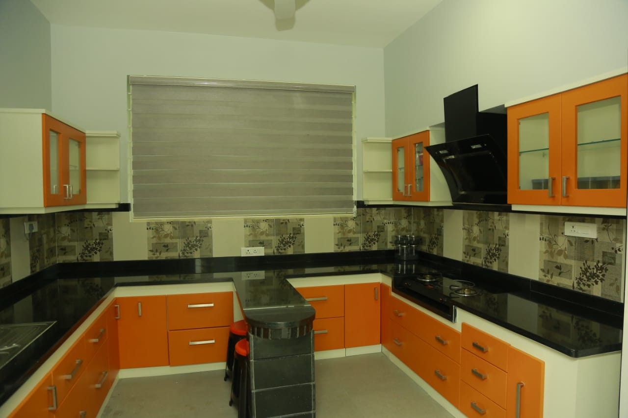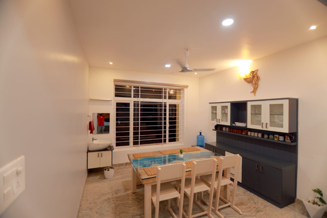 Our U-shaped modular kitchen is thoughtfully designed for both style and convenience. Equipped with a dedicated coffee bar, it offers ample storage with multiple upper and lower cabinets, making it the perfect space for families to enjoy a comfortable and homely stay.